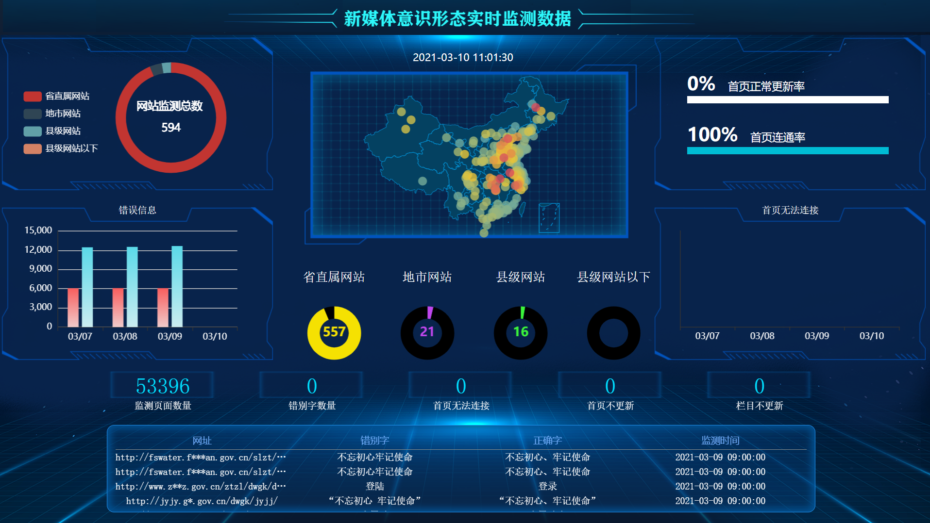 对政府网站、企业网站、新媒体内容进行在线监控,监控范围包含网站可用性监测、错别字监测、敏感词监测、网站更新监测、暗链监测、安全进程等内容,帮助政府和企业快速监管网站内容。